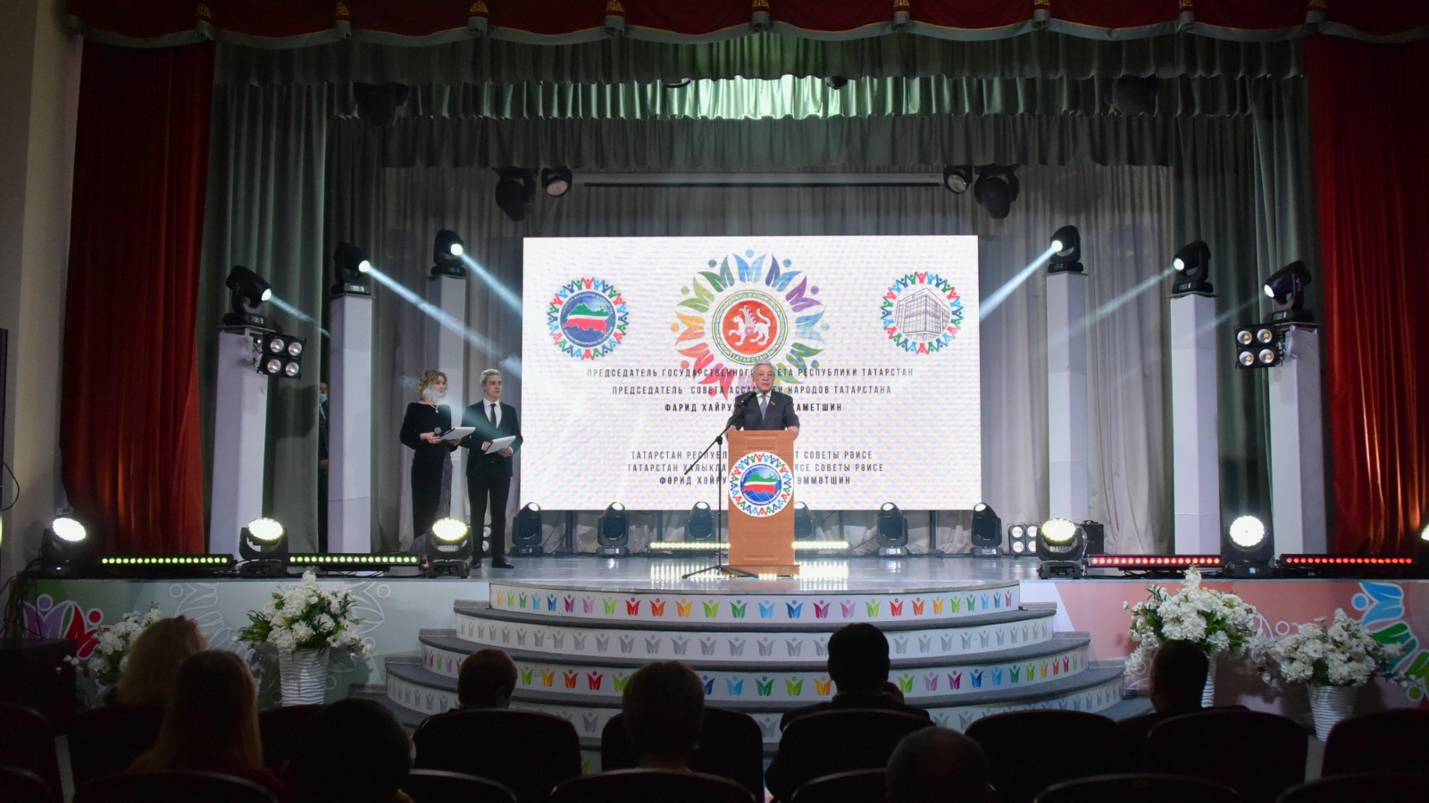 Открыл праздничное мероприятие Председатель Совета Ассамблеи народов Татарстана, Председатель Госсовета РТ Фарид Мухаметшин.