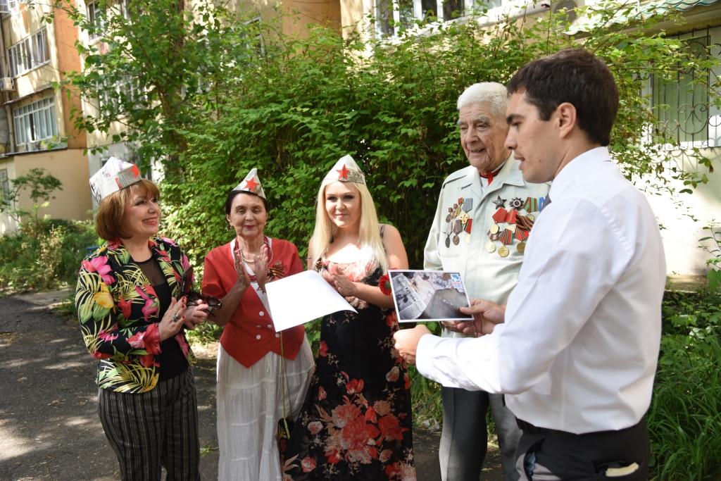 Для ветеранов были приготовлены подарки, поздравления, цветы, пожелания в виде письма-треугольника (полевая почта) и ... фронтовые песни. Маршруты были проложены во все дома, где живут наши ветераны. Такие же поздравления были организованы в городах Чирчик, Янгиюль, поселке Искандер Ташкентской области.