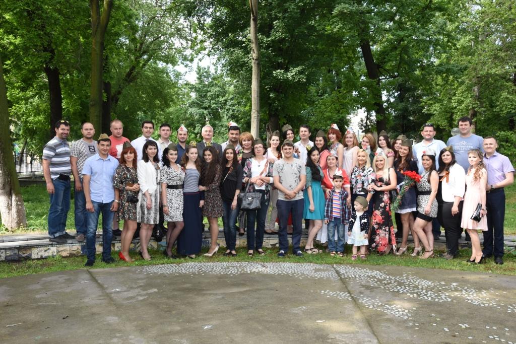 Чтобы не тесниться в квартире, собрались у него во дворе, прямо около подъезда. И как только он вышел к нам, троекратно прокричали "Поздравляем!"