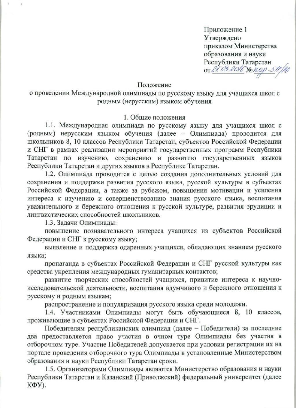 1.1. Международная олимпиада по русскому языку для учащихся школ с (родным) нерусским языком обучения (далее - Олимпиада) проводится для школьников 8, 10 классов Республики Татарстан, субъектов Российской Федерации и СНГ в рамках реализации мероприятий государственных программ Республики Татарстан по изучению, сохранению и развитию государственных языков Республики Татарстан и других языков в Республике Татарстан.